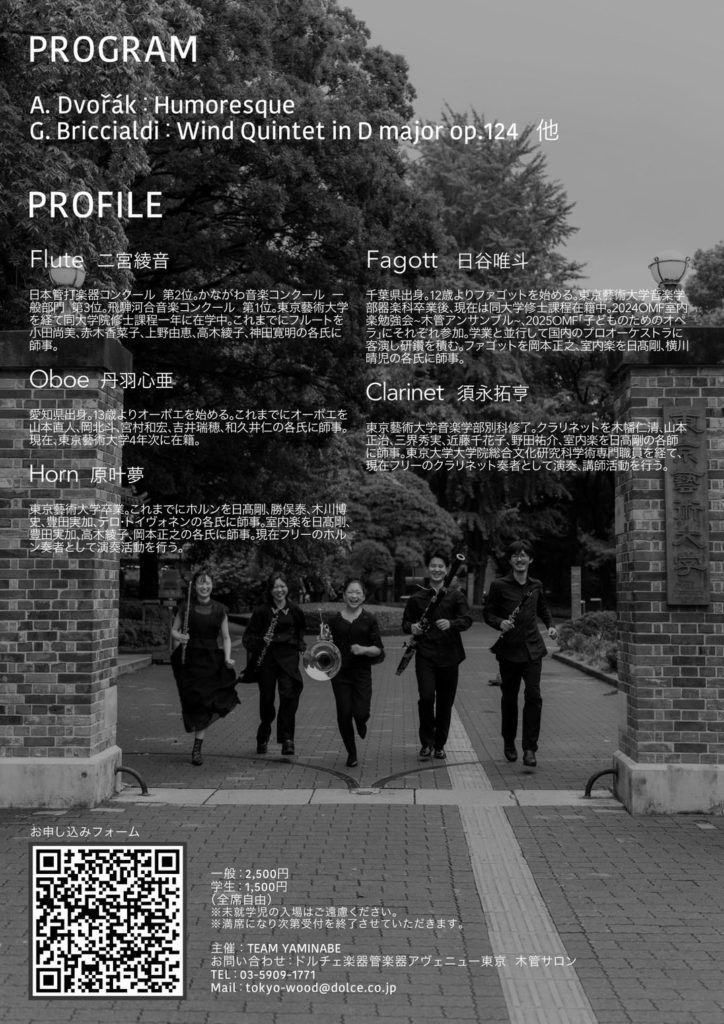 - 出演: 二宮 綾音(フルート) 丹羽 心亜(オーボエ) 須永 拓亨(クラリネット) 日谷 唯斗(ファゴット) 原叶 夢(ホルン)